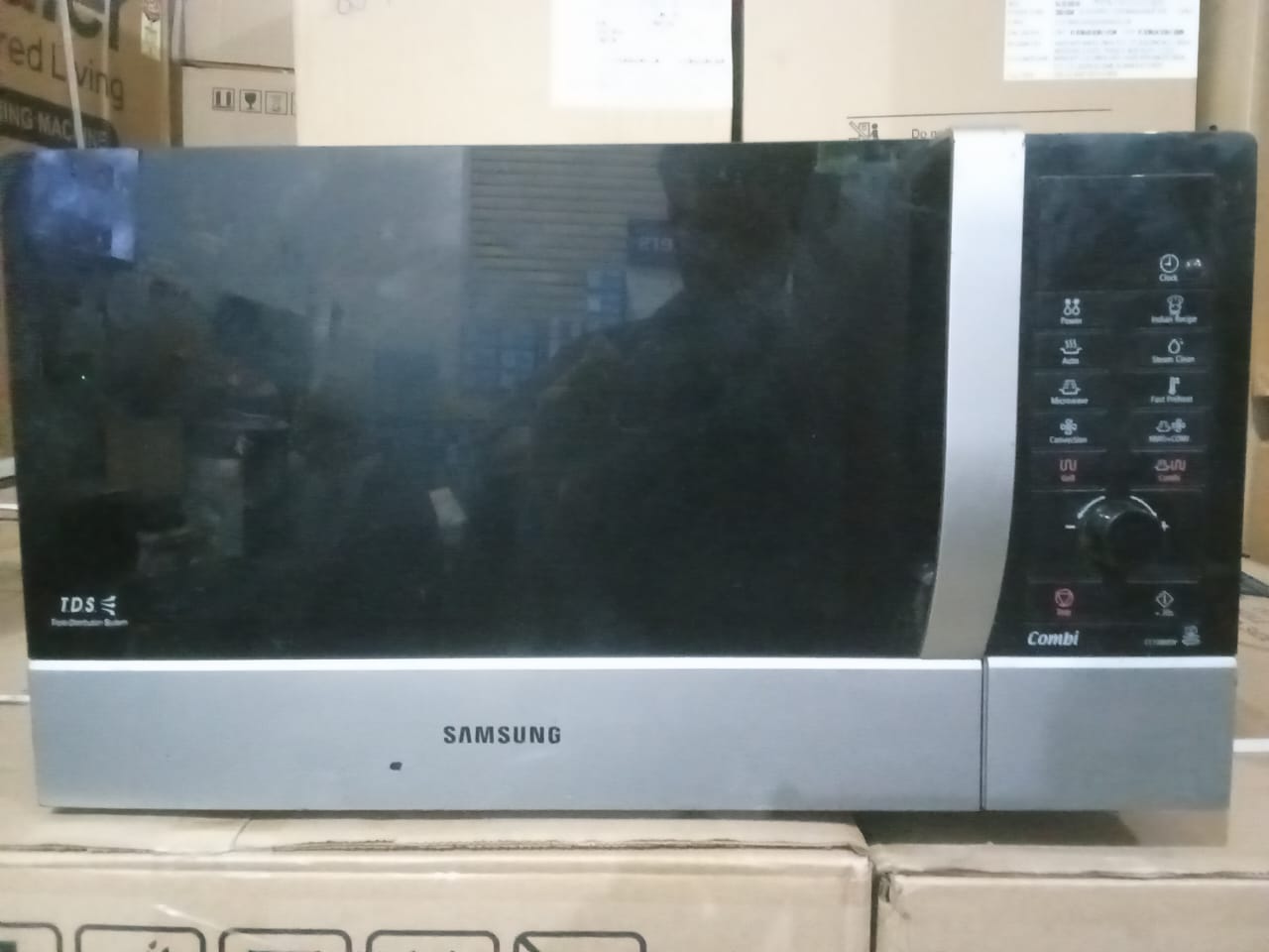 Microwave in good working condition. Only minor dents outside. with one year warranty
